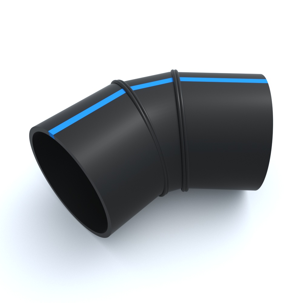 Отвод сварной ПНД 45º 355x270x361x220 мм SDR-17 используется при выполнении прокладки трубопроводов под разными углами.